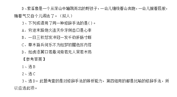 2016石家庄小升初语文试题记答案解析:修辞手法