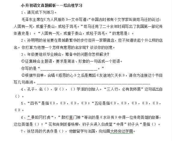 2016石家庄小升初语文试题记答案解析:综合性学习