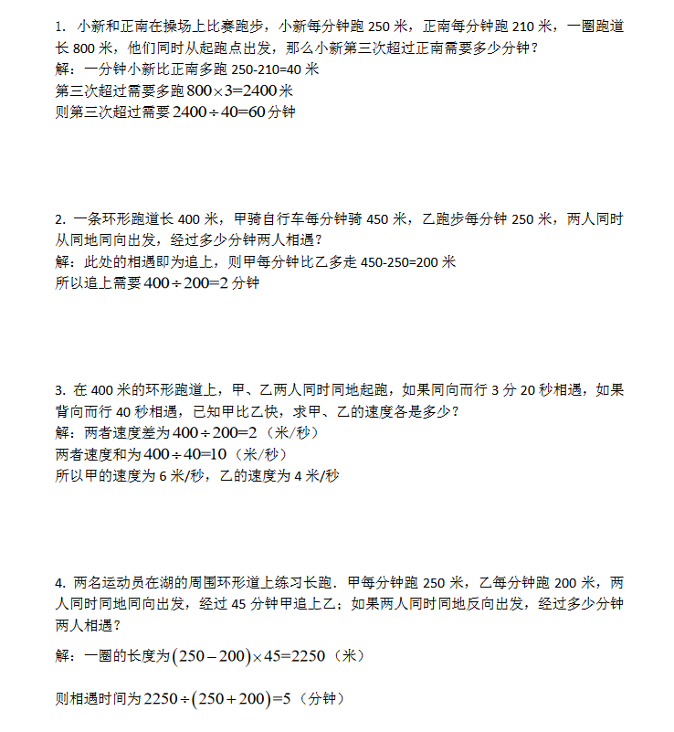 2017石家庄小升初数学重难点练习答案:环形跑道