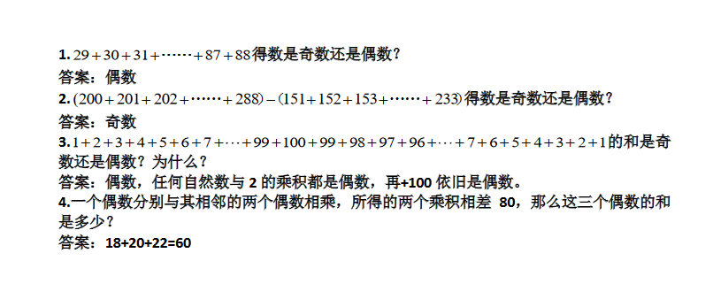2017石家庄小升初数学重难点练习答案:奇数与偶数