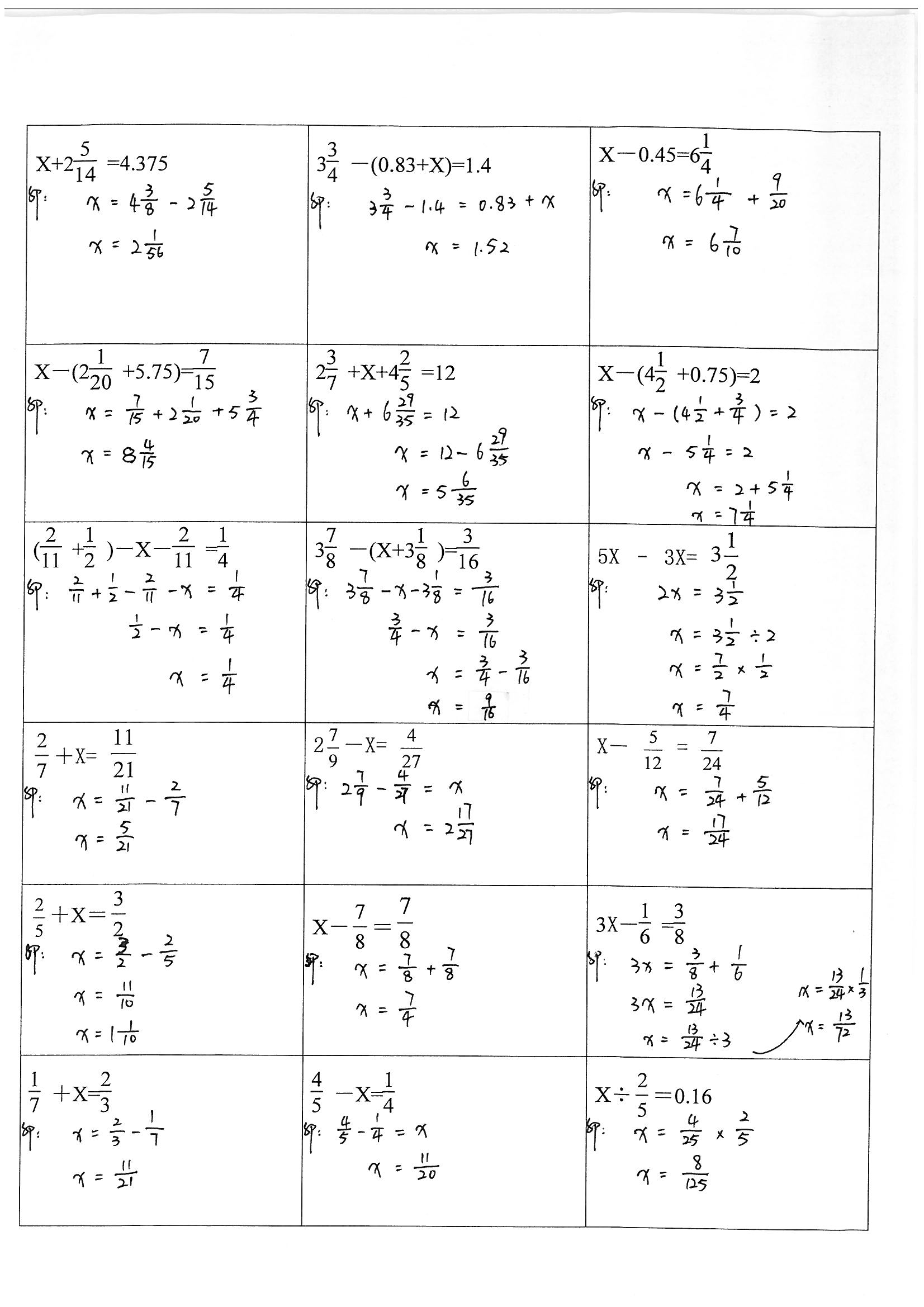 五年级计算练习:分数练习8
