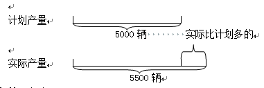 分析与解:要求“实际比计划多生产百分之几”,就是求实际比计划多生产的辆数占计划产量的百分之几,把原计划产量看作单位“1”。两者之间的关系可用线段图表示。