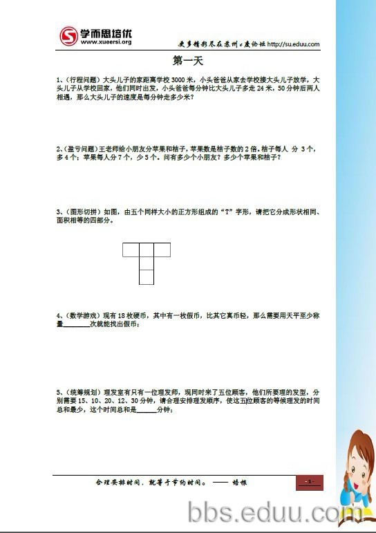 2012年苏州中小学生的寒假从1月14日就开始了,寒假期间,苏州e度论坛为四、五、六年级的学生精心准备了数学学习“营养汤”。在寒假里,希望e度“营养汤”能够滋补苏州学生们的数学,新学期提高数学学习,为小升初打下坚实的基础。进入“营养汤”