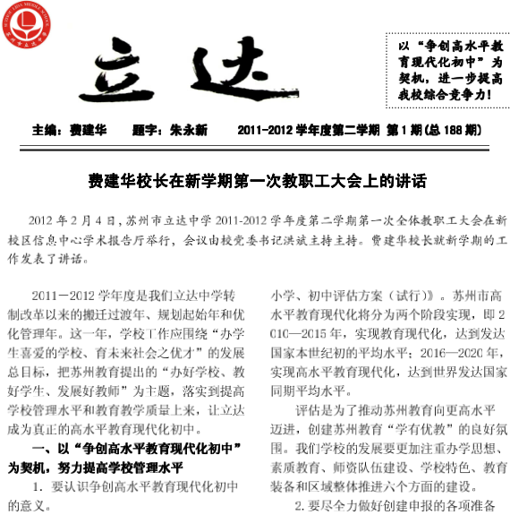 立达中学是苏州重点中学,也是苏州小升初家长比较关心和中意的学校。苏州奥数网编辑整理了立达中学简报《立达》第189期,供家长们参考学习。