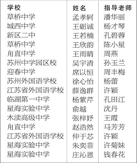 2012第四届苏报杯中小学英语作文赛获奖名单(4)