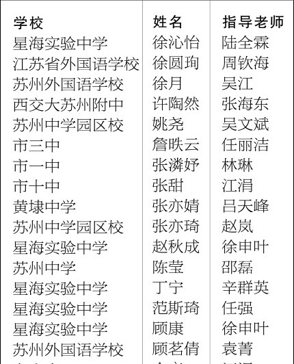 2012第四届苏报杯中小学英语作文赛获奖名单(5) 苏州奥数网 2012-11-26 10:54:19 高中组: 3、优秀奖获奖名单 小学组(50人) 下一页查看优秀奖初中组获奖名单 首页 上一页 下一页 尾页