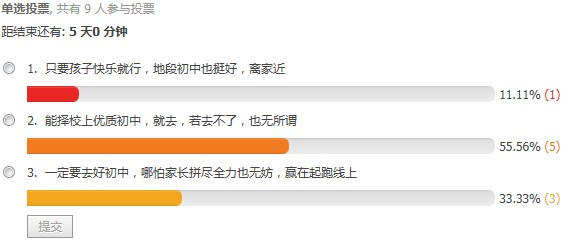 苏州奥数网讯:2014年苏州小升初即将开始,说出你的小升初升学观,要的就是一个态度。小升初择校重点初中,还是上地段?投票说出你的观点。