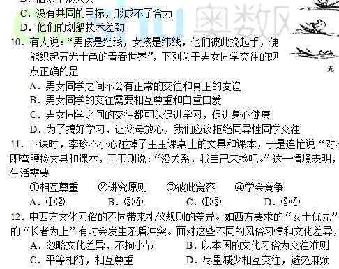 苏州相城区2012-2013第一学期期末考试试卷 初一思品(2)