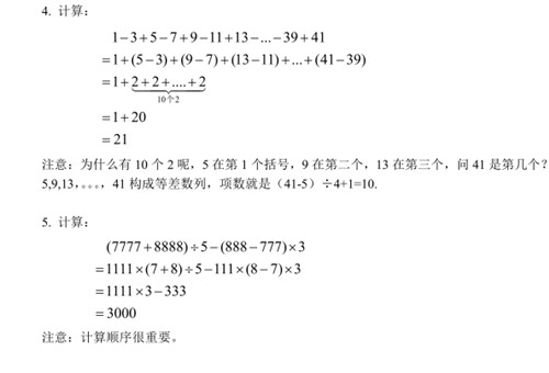 4、计算:1-3+5-7+9-11+13-.....-39+41