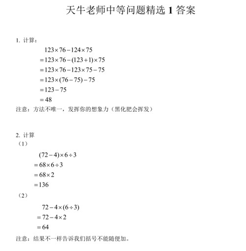 苏州奥数网讯:苏州e度名师,天牛老师推出的四年级中等难度试题精选,受到了家长们的好评。