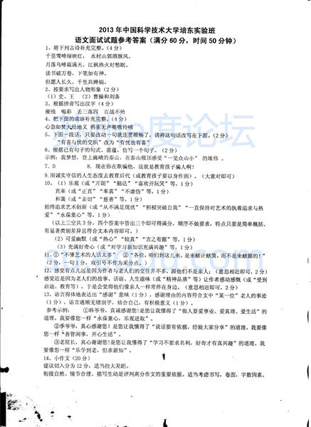 【查看原帖并参与讨论:2013年中国科学技术大学培东实验班面试试题及答案】