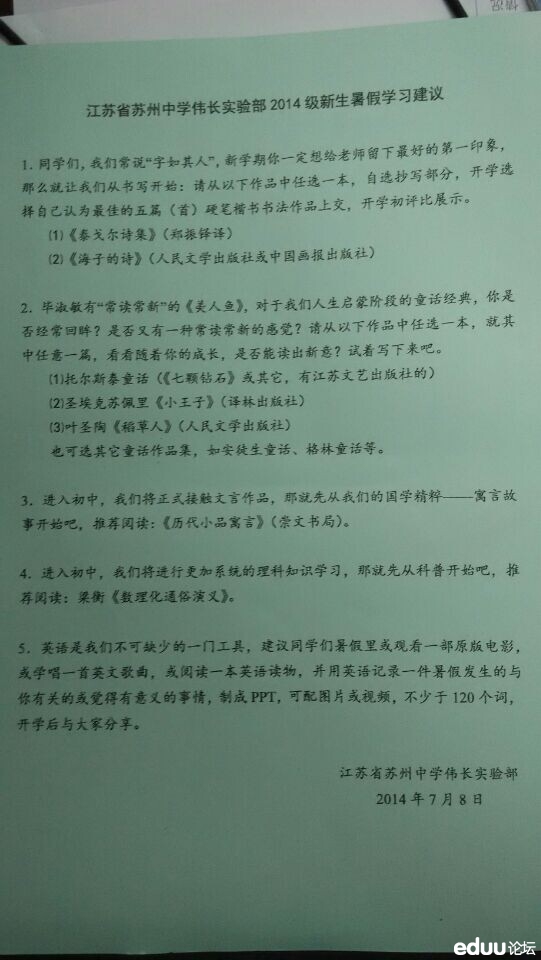 【查看原帖并参与讨论:苏州中学伟长实验部2014级新生暑假学习建议】