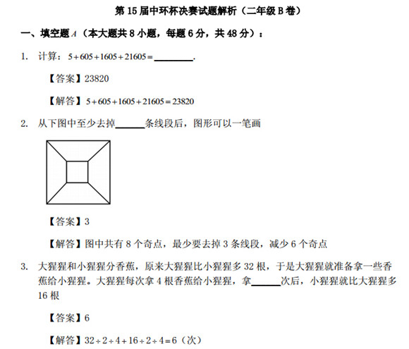 点击进行试题及详解下载:2015年第十五届中环杯决赛二年级试题及详解