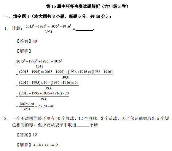 点击进行试题及详解下载:2015年第十五届中环杯决赛六年级试题及详解