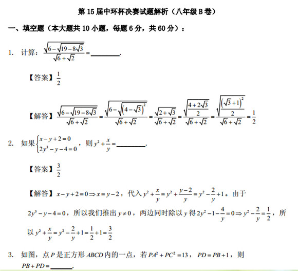 点击进行试题及详解下载:2015年第十五届中环杯决赛初二年级试题及详解