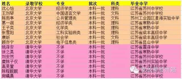 ▼2015年苏州市清华大学、北京大学详细录取名单: