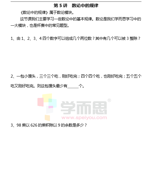 每一讲的预习题均包含3道题,都是六年级数学的辅导知识,并附有详细的答案解析,为同学们学好六年级数学知识做了很好的铺垫,因此希望同学们认真练习哟!