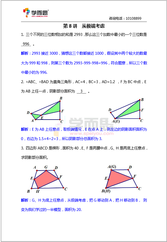 2016年苏州小升初数学练习题从极端考虑(2)