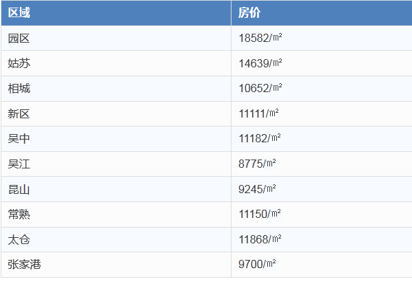 下面看看苏州各区房价分别是多少: