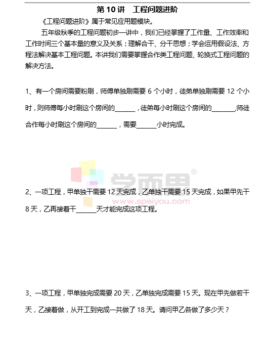 每一讲的预习题均包含3道题,都是六年级数学的辅导知识,并附有详细的答案解析,为同学们学好六年级数学知识做了很好的铺垫,因此希望同学们认真练习哟!