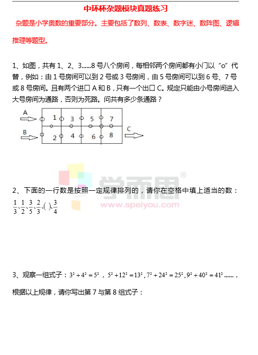 【导语】中环杯难度较高,在江浙和上海受到广泛认可。分为初赛和复赛两个阶段,初赛主要考察奥数水平,复赛考察动手能力和思维能力等综合实力。在苏州小升初择校中起着重要作用,下面分享中环杯的备考题。