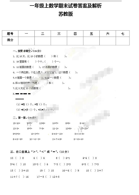 【苏教版】1年级上数学期末试卷及答案解析 奥数网 2016-01-11 15:48:57 【导语】下面小编分享往年的期末考试题,对今年绝对有很大的参考价值。 【点击下页答案解析】 首页 上一页 下一页 尾页