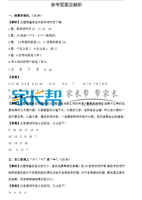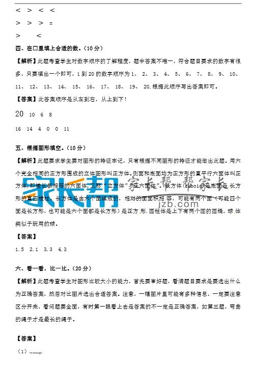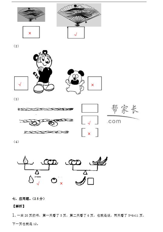 【苏教版】1年级上数学期末试卷及答案解析(2)
