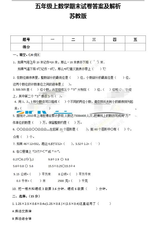 【苏教版】5年级上数学期末试卷及答案解析 奥数网 2016-01-11 16:17:24 【导语】下面小编分享往年的期末考试题,对今年绝对有很大的参考价值。 【点击下页查看更多】 首页 上一页 下一页 尾页