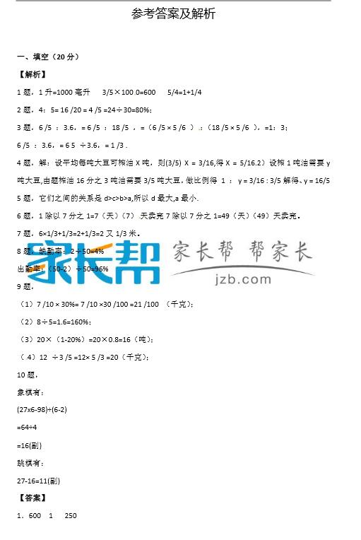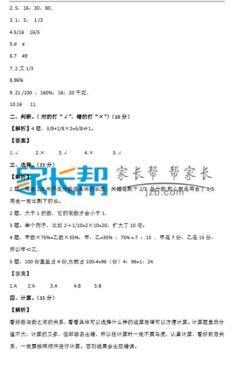 【苏教版】6年级上数学期末试卷及答案解析(2)