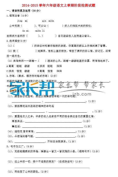 【导语】期末考试即将来临,对于小六年级的孩子来讲,六年级第一学期的期末考试尤为重要,不仅有可能与三好挂钩,而且小升初择校中,对于名初来讲,六年级上学期的期末考试成绩是个重要的参考,所以这次考试的重要性不言而喻,下面小编分享往年的期末考试题,对今年绝对有很大的参考价值。