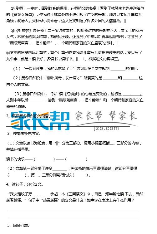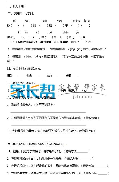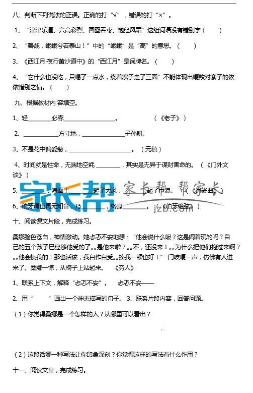 【人教版】六年级上语文期末试题(四)