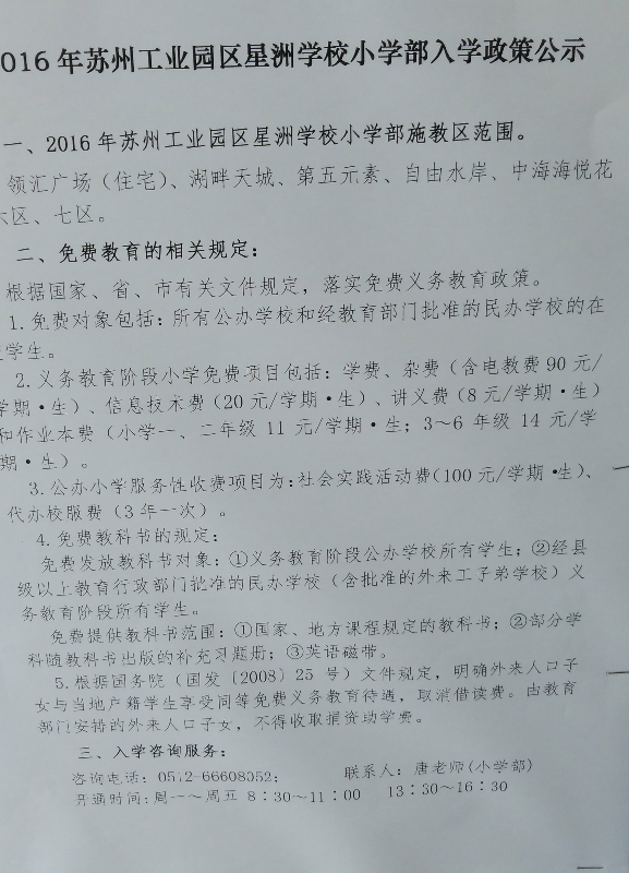 下面分享2016苏州星洲中学小升初施教区及政策,大家可以参考下。