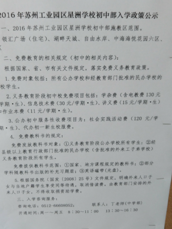一、2016年苏州工业园区星洲学校初中部施教区范围。
