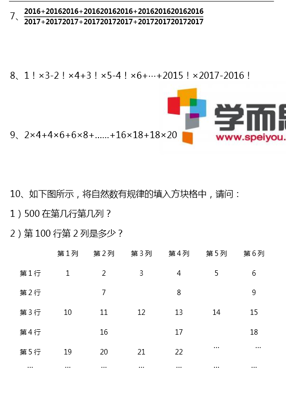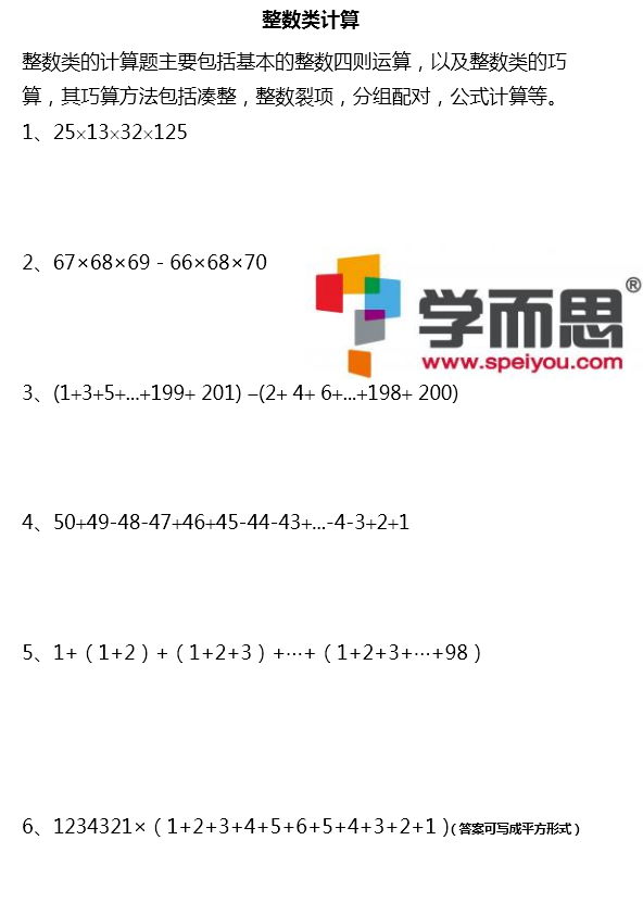 计算,在学习的每个阶段都是基础和重点,我们常说计算有5个境界:猛算,速算,巧算,心算,估算。为了让孩子有个良好的计算基础,下面分享学而思老师为我们准备的计算练习题。