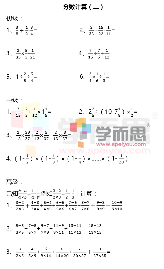 计算,在学习的每个阶段都是基础和重点,我们常说计算有5个境界:猛算,速算,巧算,心算,估算。为了让孩子有个良好的计算基础,下面分享学而思老师为我们准备的计算练习题。