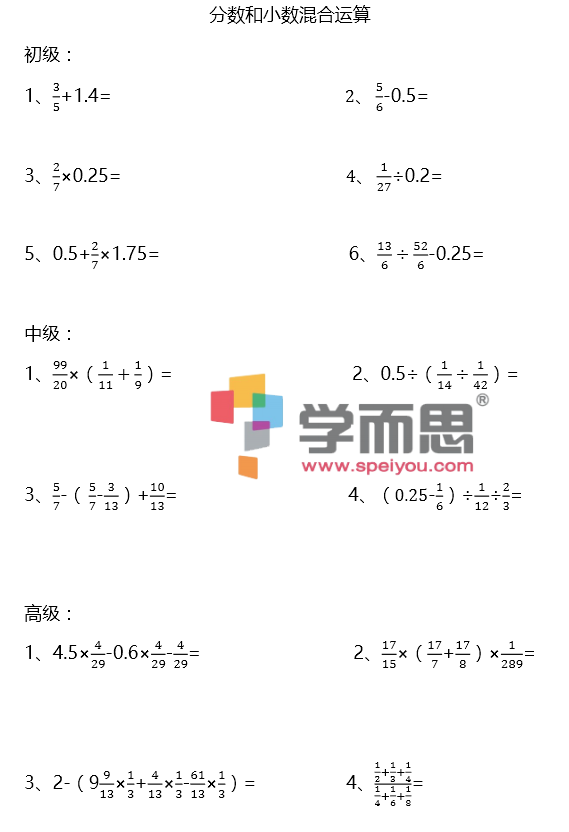 计算,在学习的每个阶段都是基础和重点,我们常说计算有5个境界:猛算,速算,巧算,心算,估算。为了让孩子有个良好的计算基础,下面分享学而思老师为我们准备的计算练习题。