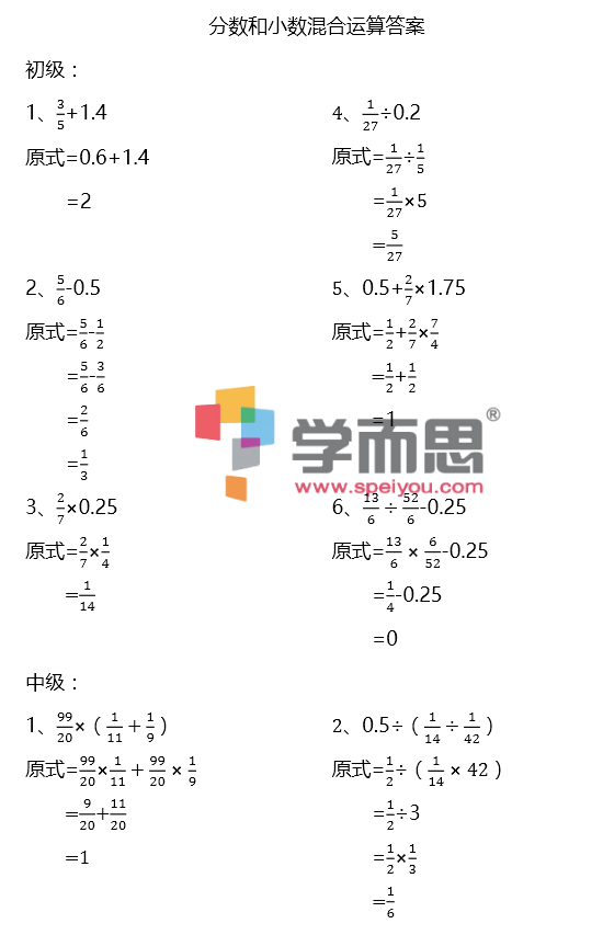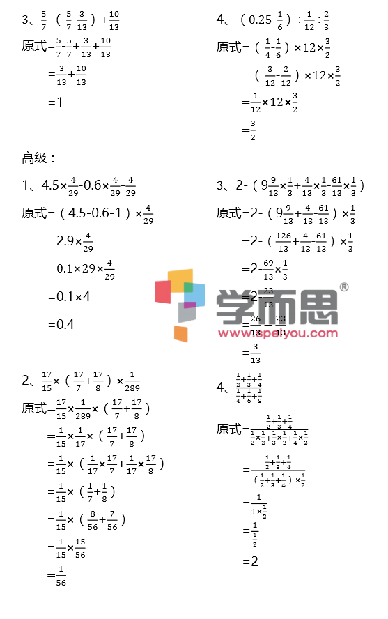2017苏州小升初计算练习题—分小混算(2)