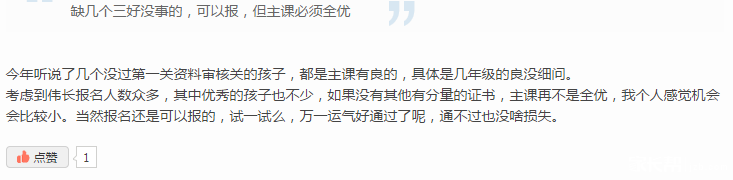 想进伟长中学的第一步就是材料审核,根据以往家长的经验,报考伟长缺一两个三好的,但主课成绩一定要全优,会给笔试机会。