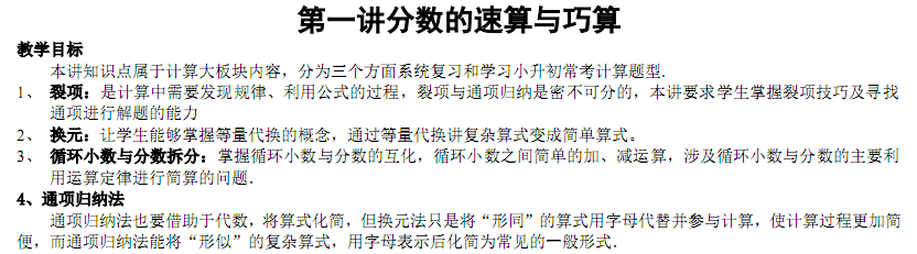 2018苏州小学六年级奥数:分数的速算与巧算-教学目标
