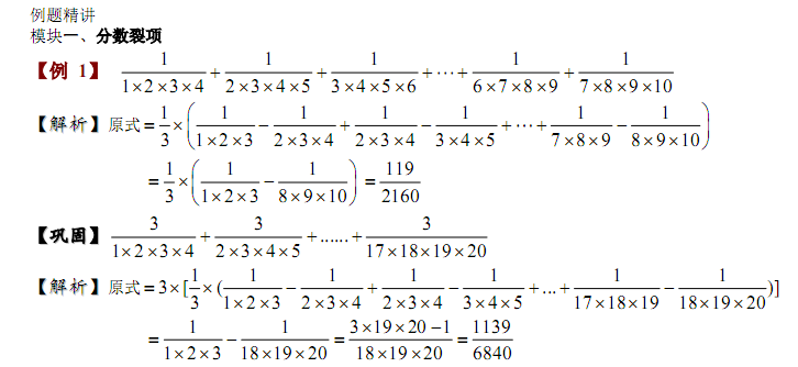 2018苏州小学六年级奥数:分数的速算与巧算-分数裂项1