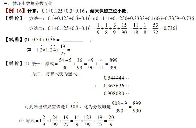 2018苏州小学六年级奥数:分数的速算与巧算-循环小数与分数互化1