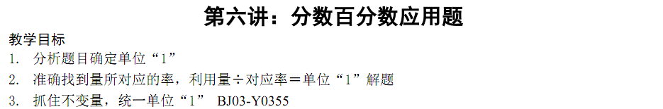 2018苏州小学六年级奥数:分数百分数应用题-教学目标1