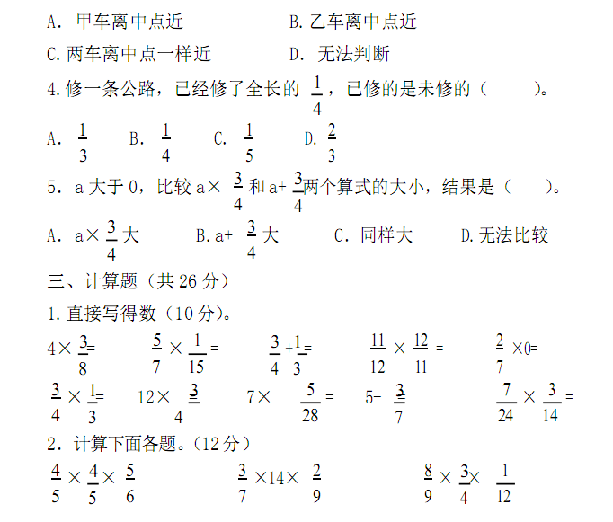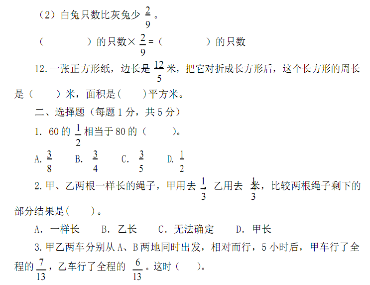 2018苏州小学生数学报六年级单元学习能力检测-第二单元2