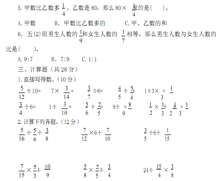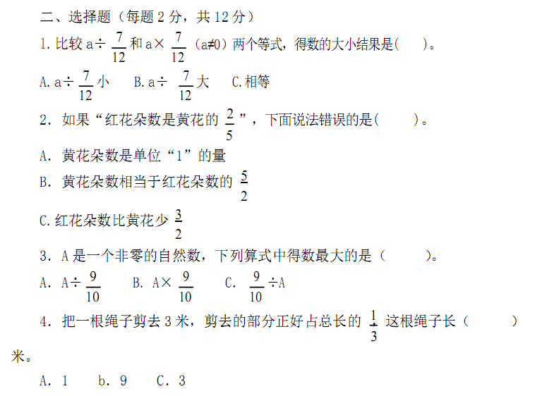 2018苏州小学生数学报六年级单元学习能力检测-第三单元上2