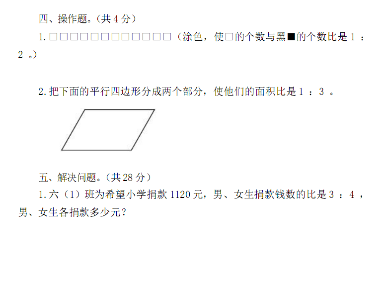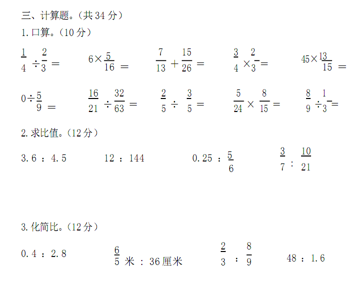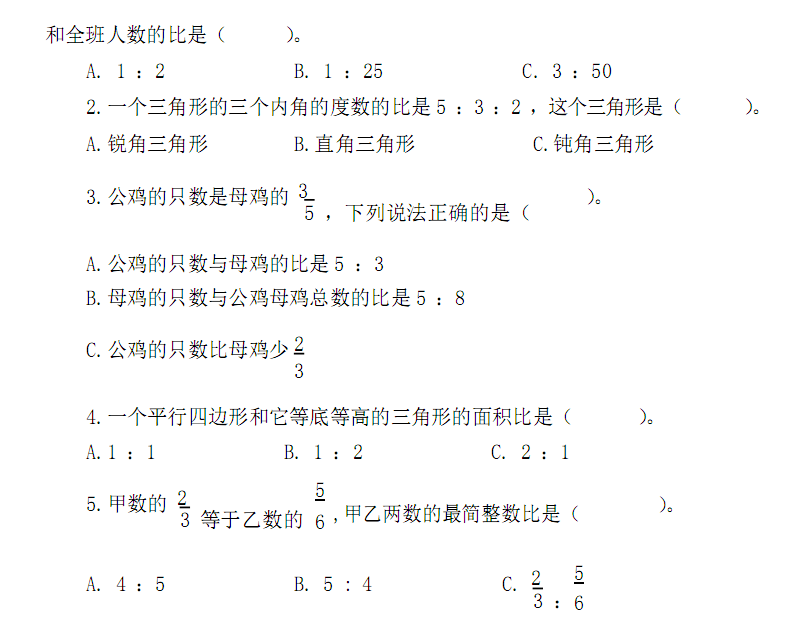 2018苏州小学生数学报六年级单元学习能力检测-第三单元下2
