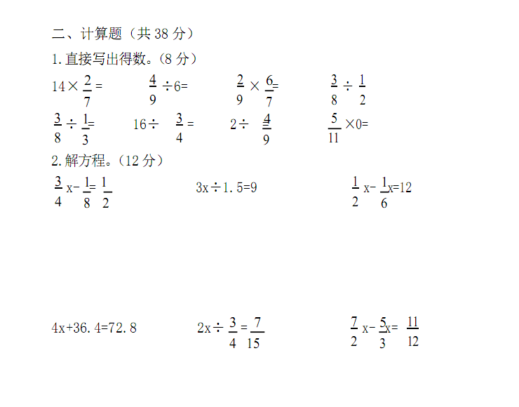 2018苏州小学生数学报六年级单元学习能力检测-第四单元2