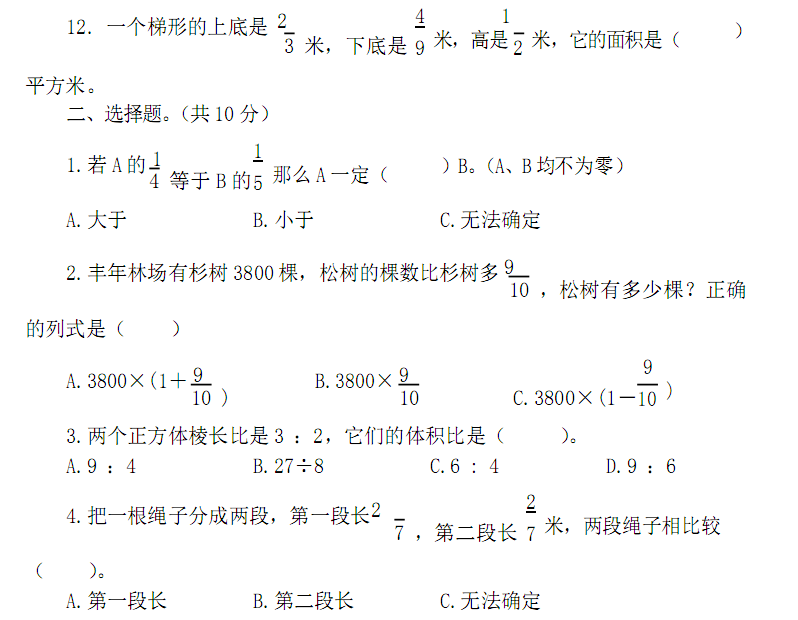 2018苏州小学生数学报六年级单元学习能力检测-第五单元2