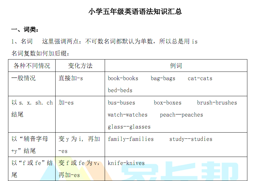 2018苏州小学五年级英语语法知识1