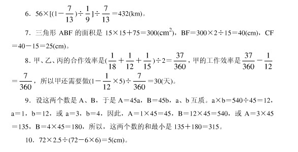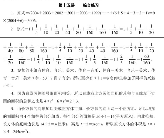 2018苏州小学六年级下册数学思维训练解析(十五