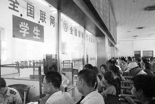 由于沈阳市的部分高校集中在7月中旬陆续放假,近两天购票旅客同以往相比有所增多。昨日16时,沈阳北站的广场上挤满了出行的旅客,其中学生占据了出行的主流。沈阳北站售票大厅二楼的28个售票窗口全部投入使用,而二楼开放的11个窗口中,专为学生售票的窗口达7个。